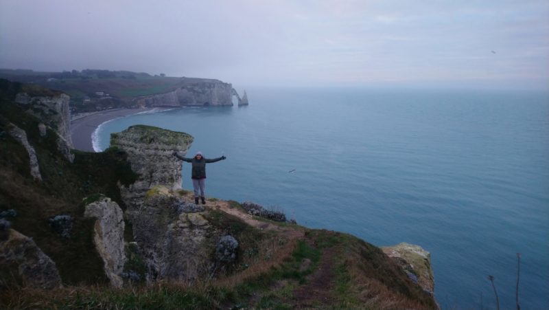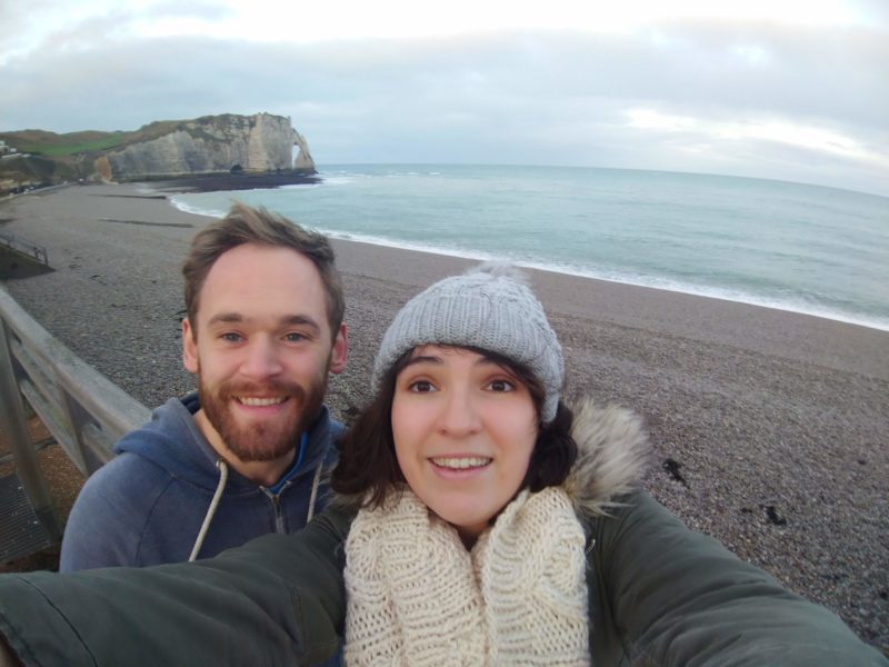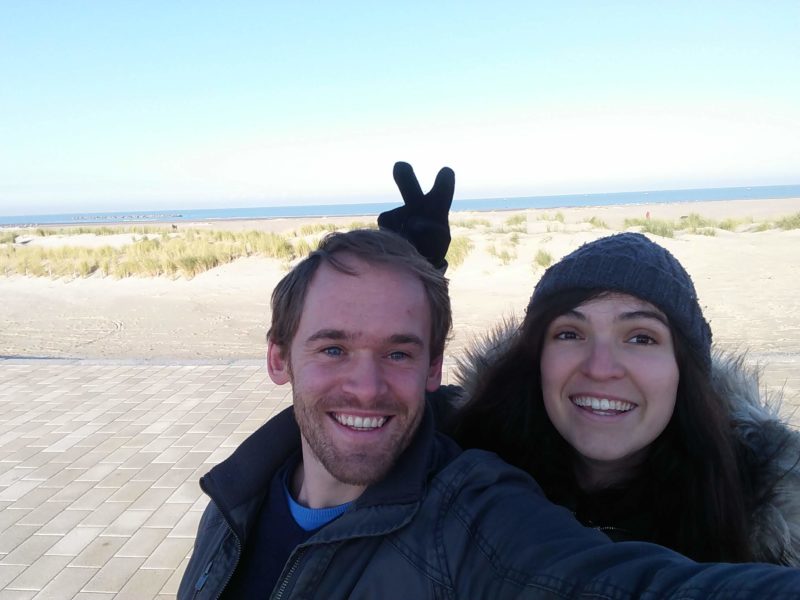 We visited the beach. It was freezing cold so we hid in a restaurant and ate pasta.
